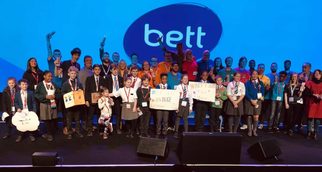 These eight schools play a part in the judging and exploration of all the stands, exhibitors and their products. From these they choose their favourites across 10 categories. Among these ActiveFloor won the category ‘Best of Bett – Most Interactive’ which was presented by Brian and Michael with the words: