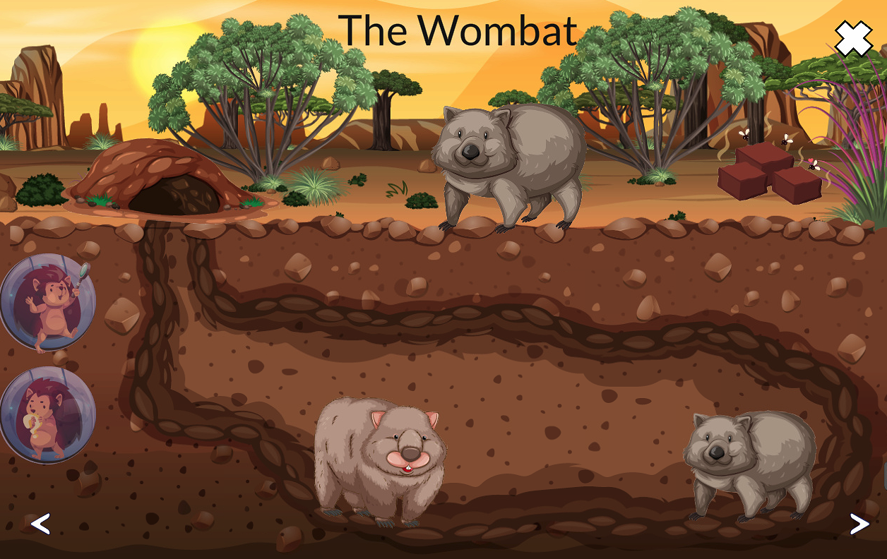 Forløbet tager børnene med på en rejse til Australien, hvor de møder sjove og spændende dyr som kænguruer, koalaer og emuer. Gennem legende spil lærer børnene om dyrenes navne, levesteder og særlige kendetegn.