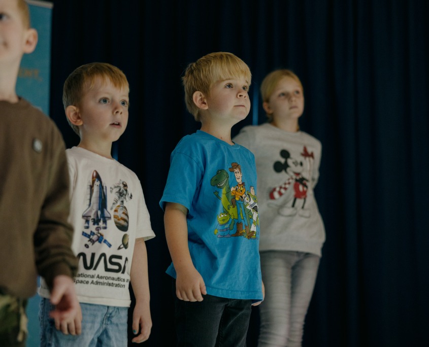 De kan stave med kroppen ved at hoppe på bogstaver. De kan arbejde med tal, geografi og andre faglige områder ved at bevæge sig i et læringsrum, hvor begreber ikke kun høres – men også ses og gøres.