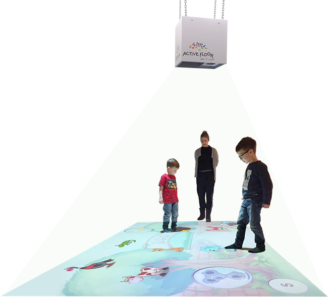 The universe of ActiveFloor combines play and movement with learning, as the children navigate in and play various activity and learning games on the interactive floor, by using their feet.